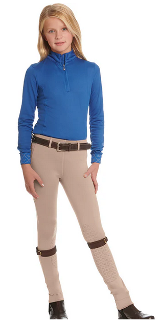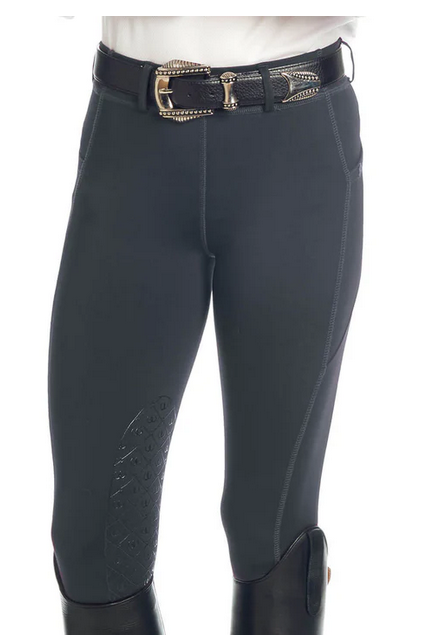 AEROWICK™ PULL ON TIGHTS WITH GRIP-TEC™ SILICONE Our Aerowick™ tights will become your favorite daily wear! Super comfortable lightweight fabric with maximum stretch plus smoothing and supportive light compression combine to create the ultimate schooling tight. Handy side pockets are big enough to hold a phone and convenient enough to hold treats. PrimaUV™ provides UPF 30 protection against 96% of UVA, RepelTech™ keeps you looking clean by repelling hair and dirt, while being abrasion resistant, and FreshLock™ lends anti-microbial and odor-resistant properties. Material: AeroWick™ - smooth ultralight spun polyester spandex Fit: Classic- average shape to hip and thigh Rise: Mid– slightly below the navel (+/- 1”)Waistband: Regular 1 1/2” Front Pockets: Side positioned EZ-V Ankle Type: Shaped stretch spandex Knee Patch: Grip-Tec™ silicone with euro seat.