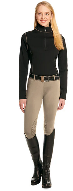 Equinox™ 3-Season Knee Patch Pull-On Breech with Grip-Tec™ silicone is the ultimate cool weather riding tight! Mid-weight material features plush brushing inside, and a smooth breeze resistant surface that retains warmth while wicking moisture. Handy side pockets are large enough to hold a cell phone and convenient enough to hold treats. PrimaUV™ provides UPF 30 protection against 96% of UVA, and FreshLock™ lends anti-microbial and odor-resistant properties.